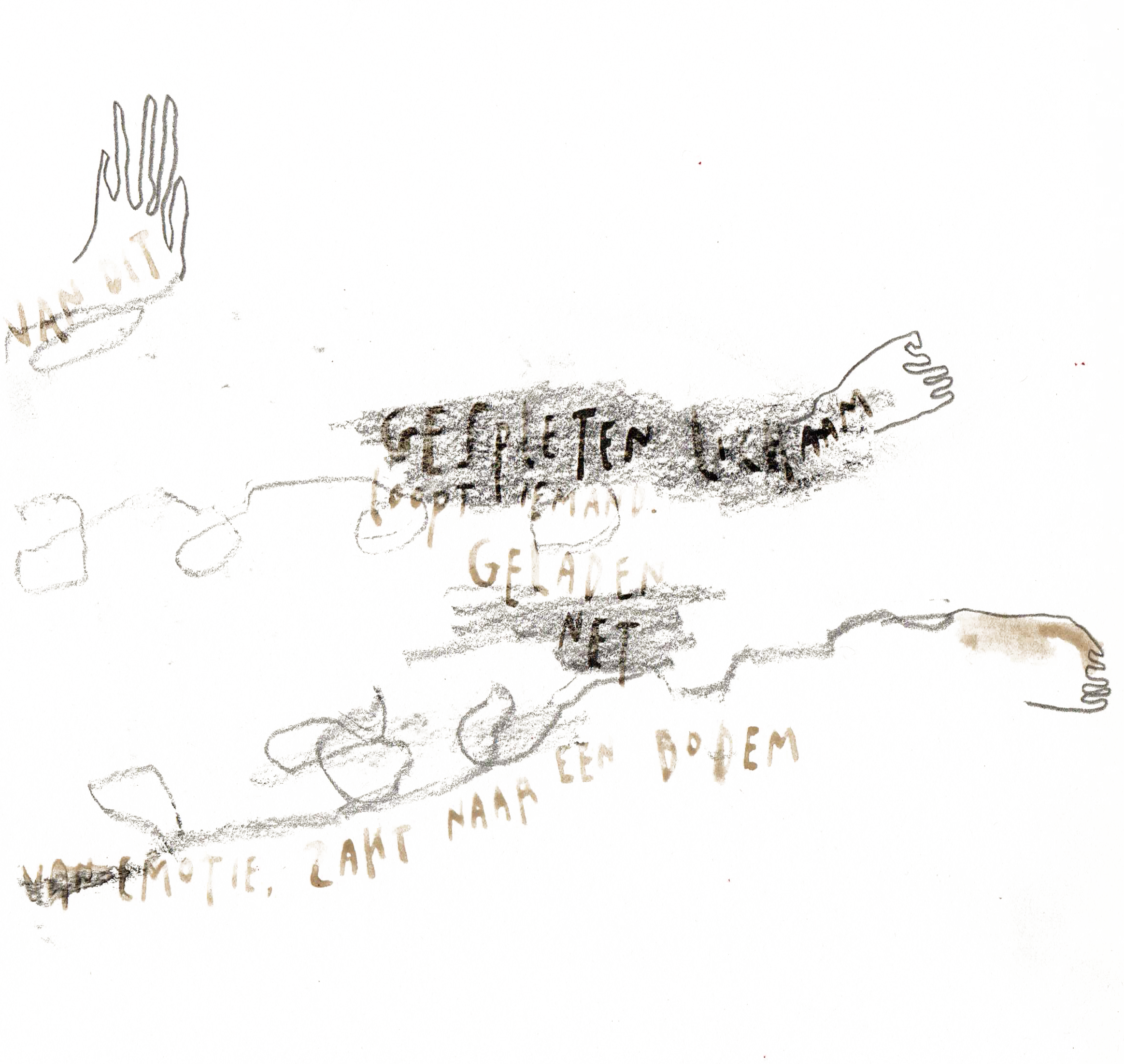 flora werkt vanuit de nieuwsgierigheid naar hoe een gedeelde handeling, tekst of tekening een correlatie kan vormen met, en door kan werken in het lichaam – en de verschillende gevoelslagen, ervaringen, symptomen en geschiedenissen die door lichamen heen bewegen.