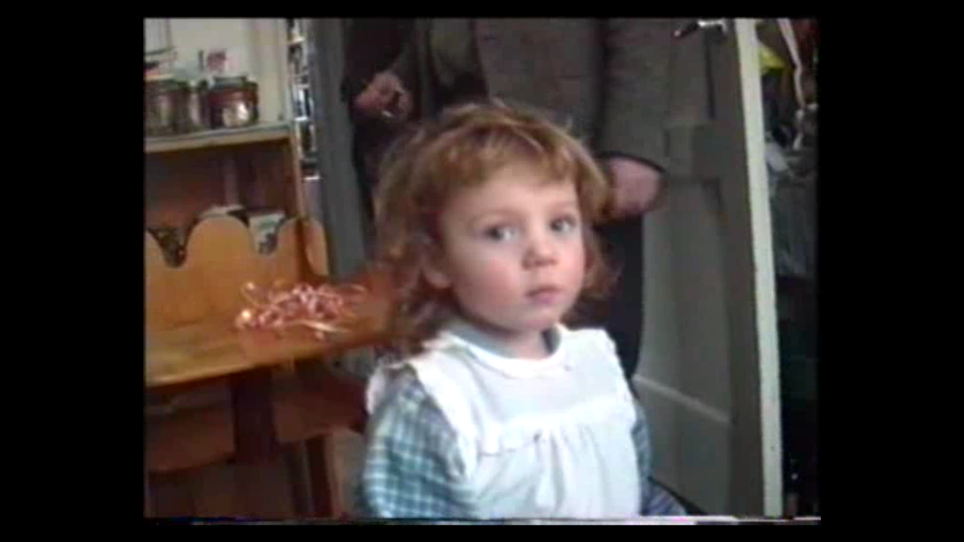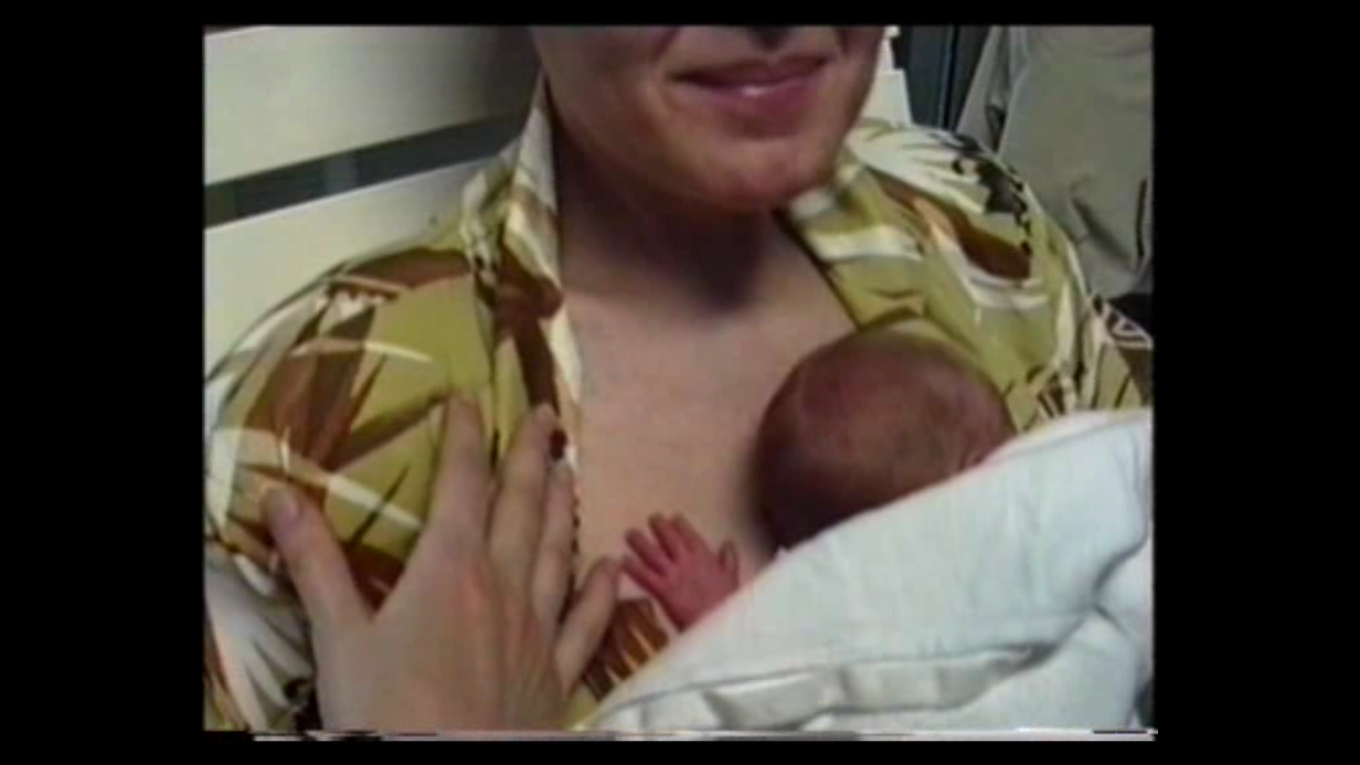 Op het scherm haalt mijn moeder mij uit mijn wieg. Ze oogt vermoeid terwijl ik met mijn handjes aan haar pyjama sjor. Ze gaat op bed zitten. De woorden: Het engeltje wordt wakker, verschijnen in beeld.